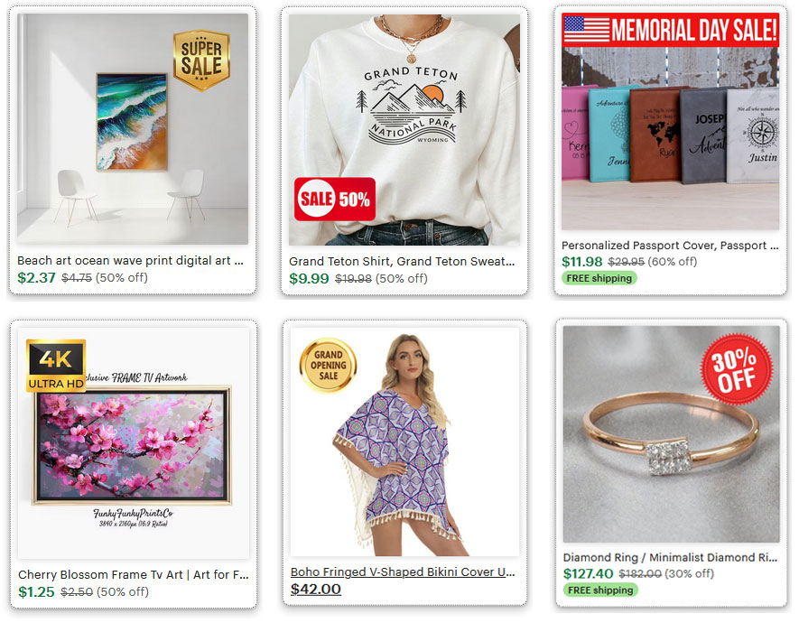 Setting sale events on Etsy is a common practice to improve your items positioning and attract visitors. However, you can improve your sales even more by adding a matching sticker to all your items on sale. Adding bright stickers help set you apart from your competition.