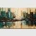 Title: Textured City Painting: Abstract Teal Wall Art, Modern Living Room Decor