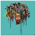 Title: Pop Art Woman Face Print: Colorful Dripping Hair, Turquoise Background